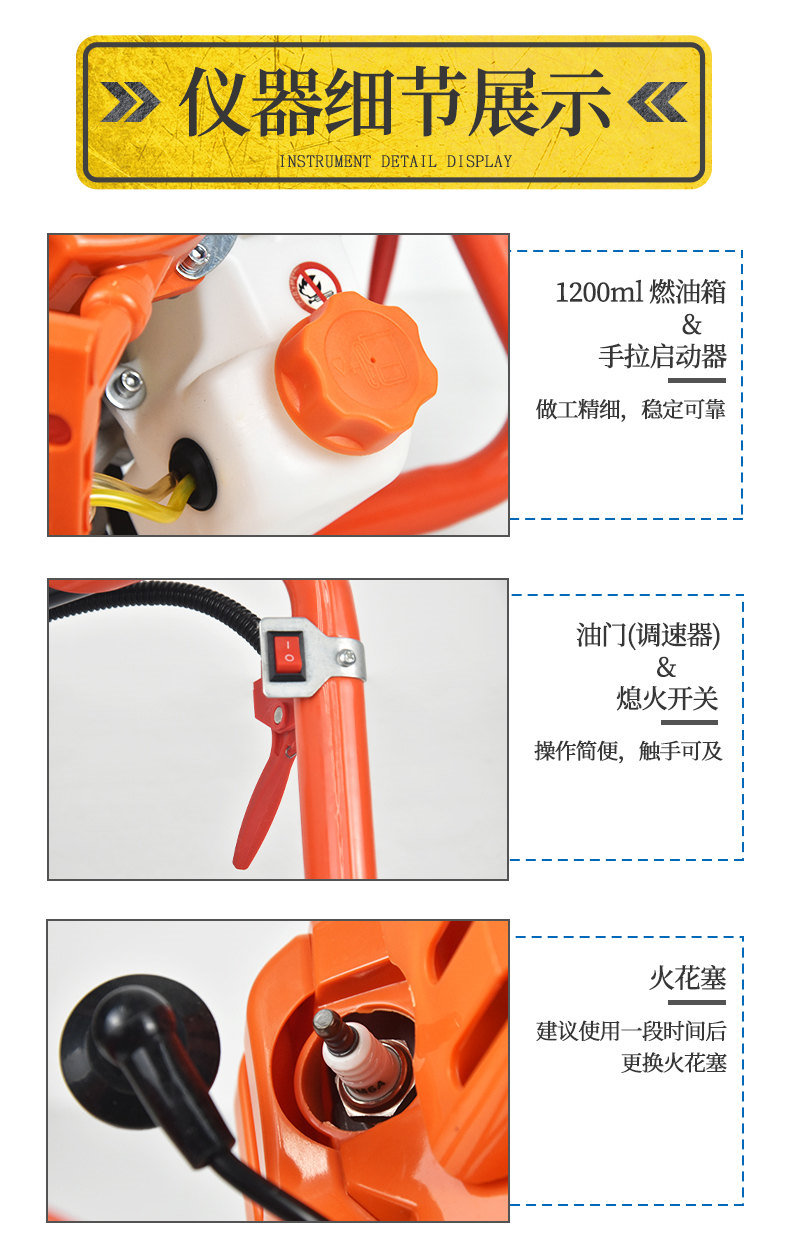 ● 手拉式啟動(dòng),即停觸發(fā)按鈕,彈簧隔離抗震手柄!